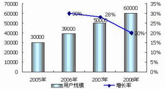 諾盛觀點:預(yù)計2006年移動增值業(yè)務(wù)用戶規(guī)模和市場規(guī)模將分別達到3億和300億,年增長率分別為30%和36%,且未來幾年都將保持高速增長;