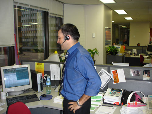 Colonial公司是一家大型的銀行業(yè)務(wù)呼叫中心,座落在悉尼市區(qū)最熱鬧的喬治大街附近,相當(dāng)于我們的上;春B。這里的幾百個(gè)座席分布在寫字樓的好幾個(gè)樓面,所有座席都是使用大北歐的無線耳嘜-GN9120。筆者記得上月去東京參觀HONDA的呼叫中心,那里只有不到三十個(gè)一線的座席代表使用無線耳嘜,這里則是所有人都配備了這種先進(jìn)的無線設(shè)備。筆者看到不少員工站著工作,還有少數(shù)走動(dòng)辦公,員工在座位上可以輕松轉(zhuǎn)身,隨時(shí)調(diào)整姿勢,讓身體處于松弛狀態(tài),這種輕松自如想必電話線那頭的客戶也感同身受。呼叫中心的經(jīng)理Venessa告訴筆者,這里的服務(wù)內(nèi)容比較豐富,對員工的業(yè)務(wù)能力要求很高,所以他們?yōu)閱T工提供一流的工作環(huán)境以減少人員流失率,降低招聘和培訓(xùn)成本,提高客戶滿意度。