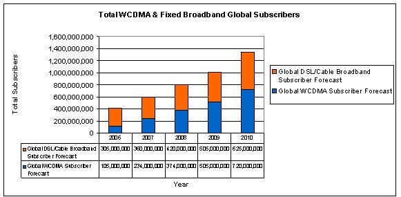 圖1:全球WCDMA和固定寬帶用戶(hù)預(yù)測(cè)