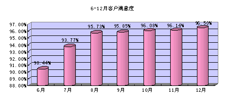 根據(jù)我們的客戶調(diào)查(每月一次),客戶對服務(wù)人員的業(yè)務(wù)能力的滿意度得到持續(xù)改進。具體數(shù)據(jù)如下圖: