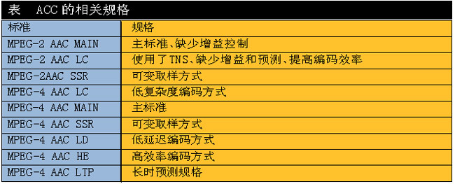 目前國際上對音頻處理技術(shù)上標(biāo)準(zhǔn)較多,在對下一代實時交互音頻處理上可以采用MPEG-1 Layer 2或AAC系列音頻,對選用標(biāo)準(zhǔn)的原則是,音頻頻響范圍要達(dá)到22kHz,這樣就幾乎可以覆蓋了人耳聽覺的全部范圍,甚至在高頻方面還有所超越,能夠使現(xiàn)場音頻得到真實自然的還原,并且在還原時可以采用雙聲道立體聲回放,使整個視頻通信的聲音有更強(qiáng)的臨近感,達(dá)到CD級音質(zhì)。同時在對鏈路帶寬的適應(yīng)和編解碼效率上達(dá)到最佳。附表列出了AAC的9種規(guī)格。
