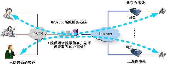MVB2000最大特點之一:特別適合組建基于IP的分布式呼叫中心,遠(yuǎn)端可以用標(biāo)準(zhǔn)的IAX2/H.323/SIP協(xié)議的IP話機或者語音網(wǎng)關(guān)。本地分機無法應(yīng)答的咨詢問題,可以直接轉(zhuǎn)接到遠(yuǎn)端的分機來回答,提供遠(yuǎn)程服務(wù)。