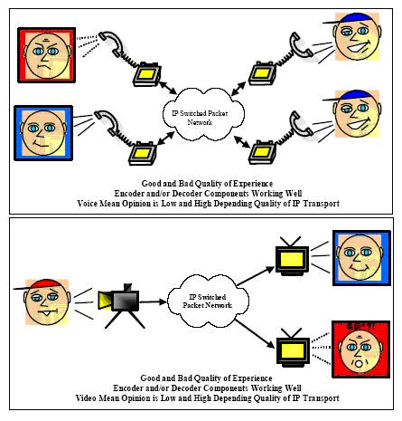 自然地,人們會向到將MOS或其它基于判斷的分值測量技術(shù)應(yīng)用于IP業(yè)務(wù)的質(zhì)量體驗測量。對于IP業(yè)務(wù),業(yè)務(wù)提供商的控制力是有限的,攜帶語音和視頻信息的數(shù)據(jù)包進入IP網(wǎng)絡(luò)后,IP業(yè)務(wù)提供商能做的僅僅丟棄數(shù)據(jù)包、延遲數(shù)據(jù)包或者將數(shù)據(jù)包重新排序。