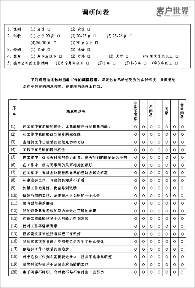 對于呼叫中心的實(shí)際情況來說,采用“明尼蘇達(dá)工作滿意度量表”(Minnesota Satisfaction Questionnaire,簡稱MSQ)效果最好,因?yàn)椋?