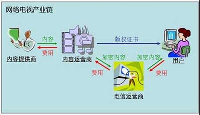 內(nèi)容保護(hù)技術(shù)適用于所有數(shù)字化的資產(chǎn),只不過(guò)對(duì)于支持IPTV的ICP們顯得更為迫切,因?yàn)榫W(wǎng)絡(luò)的傳播更為快捷。