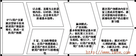 IPTV產(chǎn)業(yè)的發(fā)展,前期是通過(guò)其中的特殊功能來(lái)吸引用戶,如時(shí)移等,但之后,真正能吸引用戶的其中的某項(xiàng)業(yè)務(wù)。這在IPTV的宣傳策略上需要重視。