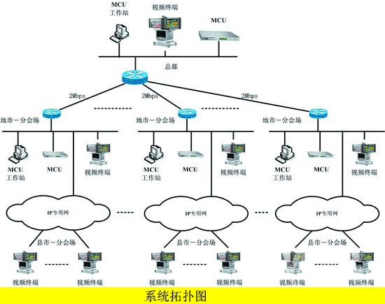在視頻會議中,要考慮到,當集團召開全體會議時,可以通過MCU級聯(lián)的方式,方便地與總部實現(xiàn)交互式會議。同時,應與VoIP語音、前方工作隊監(jiān)控系統(tǒng)融合在一起,達到整體協(xié)調(diào)高效的工作。