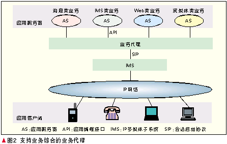 經(jīng)過(guò)多年的探索,業(yè)界取得共識(shí)網(wǎng)絡(luò)演進(jìn)必須基于業(yè)務(wù)驅(qū)動(dòng)的策略。必須指出的是,雖然基于SIP技術(shù)的IMS支持的業(yè)務(wù)從語(yǔ)音業(yè)務(wù)擴(kuò)展到了寬帶多媒體業(yè)務(wù),然而其控制機(jī)理本質(zhì)上還是源于傳統(tǒng)電信網(wǎng),因此它最適合于提供的還是諸如VoIP、集群話音、集群視頻等實(shí)時(shí)會(huì)話型業(yè)務(wù),諸如Web、電子商務(wù)等純數(shù)據(jù)型業(yè)務(wù)并不適合由IMS提供,其他許多有前景的業(yè)務(wù),如流媒體業(yè)務(wù)、IPTV、消息類(lèi)業(yè)務(wù)等的確IMS已提出或正在積極研究其提供方法,但是已有其他的非IMS提供方式。因此,切不要認(rèn)為IMS是包羅萬(wàn)象的,更確切地說(shuō),IMS是電信界提出的網(wǎng)絡(luò)融合技術(shù),考慮得更多的必然就是和傳統(tǒng)電信業(yè)務(wù)模式類(lèi)似的業(yè)務(wù)。為了使IMS在未來(lái)融合的信息通信網(wǎng)絡(luò)中繼續(xù)保持其重要的地位,在積極研究擴(kuò)大IMS業(yè)務(wù)能力的同時(shí),必須研究新的體系結(jié)構(gòu)既能夠包容IMS型業(yè)務(wù),也能夠包容非IMS型業(yè)務(wù),由此形成融合的開(kāi)放式的業(yè)務(wù)平面。這就是熱點(diǎn)研究之中的業(yè)務(wù)代理技術(shù),實(shí)際上就是架構(gòu)在IMS之上的綜合業(yè)務(wù)平臺(tái),如圖2所示。它至少能夠提供4大類(lèi)業(yè)務(wù):IMS類(lèi)業(yè)務(wù)、消息類(lèi)業(yè)務(wù)、流媒體業(yè)務(wù)、Web業(yè)務(wù)以及它們的組合,也就是說(shuō),除了IMS系統(tǒng)的SIP協(xié)議和API以外,業(yè)務(wù)平臺(tái)還應(yīng)能支持其他眾多的非IMS系統(tǒng)協(xié)議和接口,由此構(gòu)成融合的業(yè)務(wù)層。IMS系統(tǒng)是其中的一個(gè)重要組成部分,擔(dān)負(fù)起通信網(wǎng)絡(luò)的融合重任。