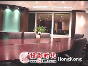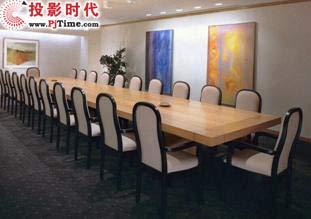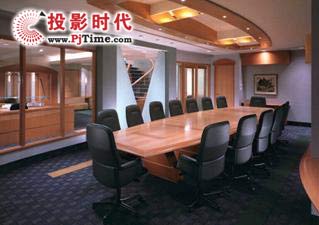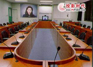 該會議室采用淺灰色色調(diào),與普通會議室沒有太大差別,采用頂部吊掛的投影機作為視頻的輸出設(shè)備,節(jié)省了會議室的空間,系統(tǒng)設(shè)備配置略復(fù)雜,具體如下: