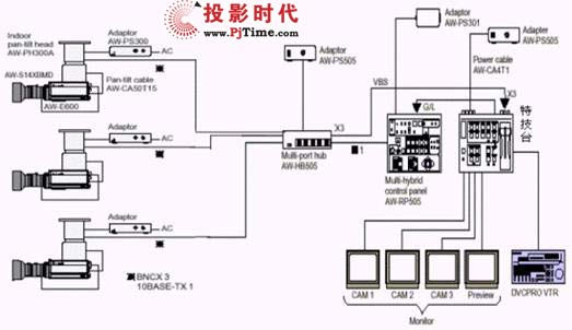 攝像機用的比較多的如松下E600攝像機,這是一款廣播級攝像機,水平分辨率為800線,最小照度為1.5lux,信噪比60dB。