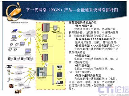 到了2007年下半年,以前勸我的朋友紛紛找我要全能通。而且他們現(xiàn)在還基于這種架構,進行更深一步的開發(fā)。2008年推出的統(tǒng)一通信,在某些方面還不如全能通。全能通即有目前統(tǒng)一通信的功能,還甚至包括無線的WAP、短信等功能。(詳細的功能與結構,請看‘全能通--下一代網(wǎng)絡(NGN)的應用’—是我?guī)秃蛣?chuàng)世紀寫的文章)