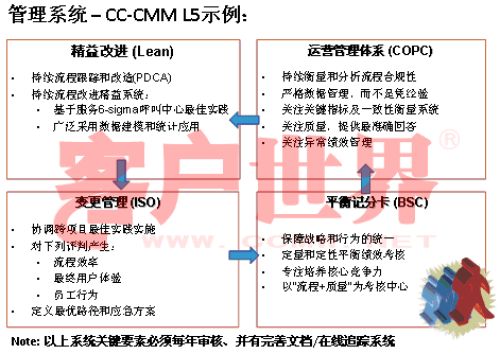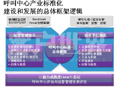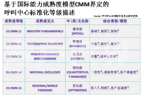 事實(shí)上,我們現(xiàn)在的標(biāo)準(zhǔn)化模型,請(qǐng)看一下CMM模型,該模型是基于近20年全球產(chǎn)品質(zhì)量研究成果所建立,美國(guó)的Walter Shewart于上世紀(jì)30年代發(fā)表了統(tǒng)計(jì)質(zhì)量控制成果。在Watts Hunaphrey和Ron Radice等人的研究成果之上,卡萊基.梅隆大學(xué)軟件工程研究所將這套質(zhì)量控制方法改造為能力成熟度框架并標(biāo)明不同成熟度等級(jí),率先在軟件工程、系統(tǒng)工程、系統(tǒng)采購(gòu)、繼承產(chǎn)品和過程管理等領(lǐng)域?qū)嵺`,目前CMM模型已成為國(guó)際公認(rèn)的工程規(guī)劃、質(zhì)量管理和流程運(yùn)營(yíng)方面的權(quán)威標(biāo)準(zhǔn);CC-CMMTM正是CMM這一權(quán)威模型和新興市場(chǎng)(Emerging Markets)呼叫中心產(chǎn)業(yè)深入研究相結(jié)合的成果。。我在前幾年企業(yè)實(shí)施標(biāo)準(zhǔn)的時(shí)候深入研究了這套模型,這套模型對(duì)我們呼叫中心產(chǎn)業(yè)有極大的適用性,幾乎每個(gè)呼叫中心都可以在這套模型找到定位,從一個(gè)渾沌的初始過程到管理者,如果能夠建設(shè)一個(gè)持續(xù)的管控的流程到定義級(jí),如何進(jìn)行一致化管理,再到預(yù)知級(jí),幾乎每個(gè)呼叫中心從大到小,從年輕到發(fā)展一段時(shí)間都可以找到自己的定位,所以我們?cè)谠瓉淼男畔a(chǎn)業(yè)指導(dǎo)委員會(huì)的支持下,我們重新結(jié)合CMM模型開發(fā)出了符合我們呼叫中心發(fā)展的一個(gè)標(biāo)準(zhǔn),我建議大家把它看成是一個(gè)模型,整個(gè)國(guó)際產(chǎn)業(yè)都定性了標(biāo)準(zhǔn),因?yàn)榇蠹叶贾繡MM模型是一個(gè)開放性的知識(shí)體系,并不是一個(gè)封閉標(biāo)準(zhǔn)。CMM模型,首先你的呼叫中心建設(shè)要能夠符合呼叫中心的定義,不是找?guī)着_(tái)話機(jī)或?qū)ν庥袀(gè)一個(gè)客服號(hào)碼對(duì)外就能稱為呼叫中心。
