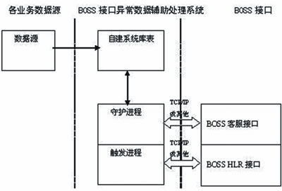 值得一提的是,作為BOSS與外圍系統(tǒng)的承接點(diǎn),接口的功能最終可歸結(jié)為對BOSS與外圍系統(tǒng)數(shù)據(jù)庫的操作。其中,主動(dòng)接口的實(shí)現(xiàn)邏輯對BOSS2.0接口監(jiān)控措施的實(shí)現(xiàn)至關(guān)重要。