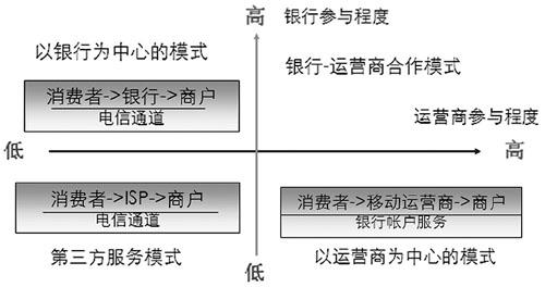 系統(tǒng),通過定制終端,電信運(yùn)營(yíng)商可以將各種先進(jìn)的移動(dòng)應(yīng)用提供給用戶,使用戶獲得良好的移動(dòng)化生活體驗(yàn)。因此,電信運(yùn)營(yíng)商在移動(dòng)支付方面具有較好的用戶資源和營(yíng)銷渠道?梢,電信運(yùn)營(yíng)商和銀行的協(xié)作程度在很大程度上決定了移動(dòng)支付商業(yè)模式的績(jī)效水平。