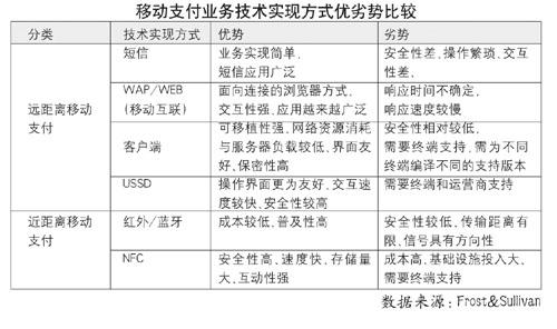 各種移動(dòng)支付技術(shù)方式比較