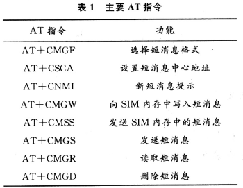 AT即Attention,AT指令集是從終端設(shè)備(Ter-minal Equipment,TE)或數(shù)據(jù)終端設(shè)備(Data Terminal Equipment,DTE)向終端適配器(Terminal Adapter, TA)或數(shù)據(jù)電路終端設(shè)備(Data Circuit Terminal E-quipment,DCE)發(fā)送的。通過(guò)TA,TE發(fā)送AT指令來(lái)控制移動(dòng)臺(tái)(Mobile Station,MS)的功能,與GSM網(wǎng)絡(luò)業(yè)務(wù)進(jìn)行交互。用戶(hù)可以通過(guò)AT指令進(jìn)行呼叫、短信、電話(huà)本、數(shù)據(jù)業(yè)務(wù)、傳真等方面的控制。主要AT指令如表1所示。