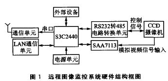 在嵌入式領域,ARM9系列微處理器在高性能和低功耗方面提供了最佳的性能,因此選用ARM9嵌入式處理器S3C2440設計實現了一個遠程圖像光線監(jiān)控系統(tǒng)通過這個系統(tǒng),可以遠在千里之外控制一個攝像機進行圖像采集并回傳。如果這個攝像機有一個485接口的云臺,還可以通過互聯網遠程控制攝像機的取景角度、鏡頭拉伸、聚焦等功能.