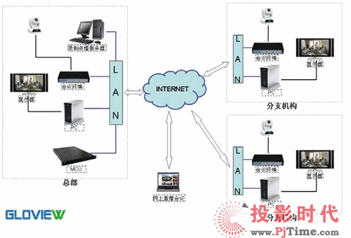 多點會議系統(tǒng)可以滿足不同規(guī)模的遠程會議要求,從兩方會議到上百方的會議都可以達到理想的會議效果,系統(tǒng)同時可以將會議內(nèi)容錄制下來通過GLOVIEW會議點播系統(tǒng)進行點播,在沒有安裝視頻會議系統(tǒng)的機構(gòu)可以安裝軟件觀看會議直播,可以支持數(shù)百至上千用戶接入觀看會議,具體組網(wǎng)如下:組網(wǎng)圖及組網(wǎng)說明: