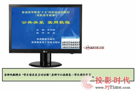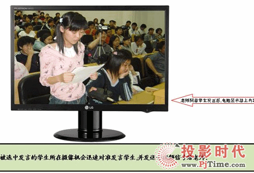 授課教室內(nèi)如果教師在講課,畫面自動切換到教師,如果教師在使用電腦則自動切換到電腦,如果教師讓某學生發(fā)言,則切換到學生畫面。
