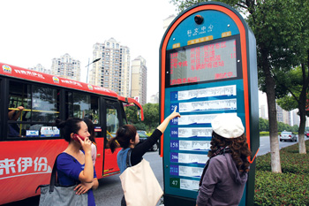 智能公交系統(tǒng)運(yùn)行以后,乘坐公交車的市民可以通過公交電子站牌、“96196”交通服務(wù)熱線電話、移動(dòng)掌上公交短信查詢、蘇州交通縱橫網(wǎng)站和蘇州移動(dòng)生活網(wǎng)等多種方式實(shí)時(shí)查詢車輛到站信息。