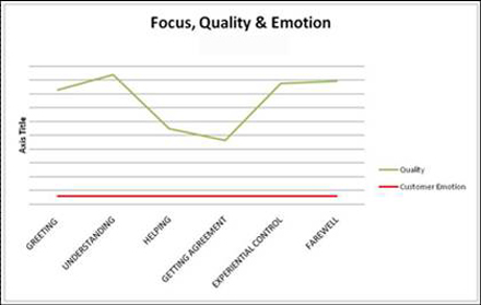 將QA流程成功“移植”到VOC中去的關(guān)鍵在于,以最快的速度度量客戶在呼叫各階段的“情感水平”。記分系統(tǒng)必須夠簡單,如從1——5,1代表非常生氣/不高興,5代表非常高興/愉快。由QA分析師來評判客戶在呼叫中每個階段的情感。由于度量標(biāo)準(zhǔn)是主觀的,因此實際分數(shù)并不很重要。更進一步,客戶也可以被邀進來參加呼叫質(zhì)量調(diào)研。調(diào)研結(jié)果再結(jié)合呼叫時的客戶情感來分析。