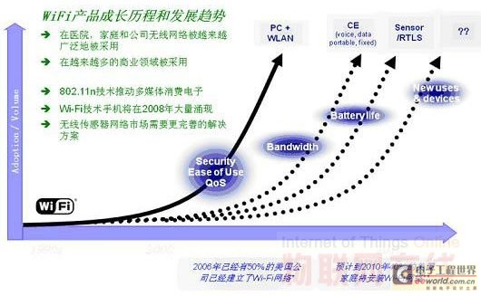 將Wi-Fi用于WSN網絡,確實是個不錯的主意。因為它能夠享受到正在被大規(guī)模部署的Wi-Fi網絡所帶來的成熟的技術、各種層出不窮的Wi-Fi設備、既有的網絡設施、架構支持、豐富的網絡知識,另外還有快速安裝和減少了學習周期和與其他協(xié)議互操作而帶來的各種麻煩,加快開發(fā)周期。