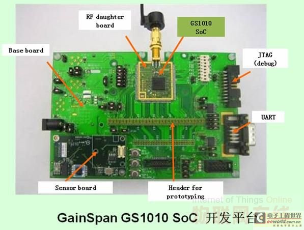 為了幫助客戶縮短開發(fā)周期, GainSpan還提供了一整套包括SDK、評估平臺、開發(fā)平臺在內的軟硬件工具。其軟件棧包括了各種I/O驅動和WLAN固件、RTOS、網絡棧、系統(tǒng)服務、WLAN和I/O服務模塊、各種應用編程接口以及應用軟件。Parmar聲稱,GS1010的SDK能夠幫助工程師節(jié)約10~12個月的開發(fā)時間。而硬件開發(fā)平臺則能夠支持溫度、濕度、光敏、壓力、加速度等各種傳感器,并預留了客戶自選的傳感器接口和調試以及程序燒錄接口。