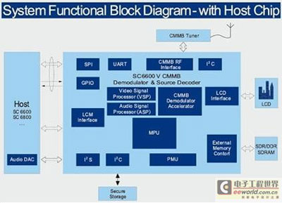 目前,支持CMMB標(biāo)準(zhǔn)的芯片產(chǎn)品多是信道解調(diào)芯片,必須要外配信源解碼處理器芯片來完成信源解碼,從而才能真正實現(xiàn)手機(jī)電視功能。SC6600V是業(yè)界首顆集成了CMMB解調(diào)和H.264信源解碼的高性能、低功耗芯片,它的集成度提高直接帶來利益點就是功耗和成本的降低,豐富的外圍接口以及靈活的功能選擇給這款芯片增添了增值的空間,擴(kuò)展了其應(yīng)用領(lǐng)域。