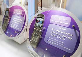 這是Panasonic推出具備多媒體簡訊特色的新手機。全球主要電信配備制造商都在摩拳擦掌,希望能靠能傳送多媒體簡訊的手機,為暮氣沉沉的手機市場帶來另一個春天。