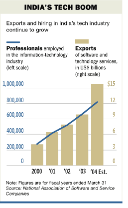 據(jù)印度軟件科技園的官員們介紹,在高科技中心班加羅爾,每周都會(huì)有兩三家西方公司的新業(yè)務(wù)在此開(kāi)張,越來(lái)越多的公司將從軟件開(kāi)發(fā)到企業(yè)后勤支持等工作外包給印度。