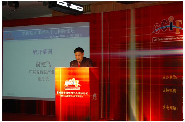 由廣東省信息協(xié)會(huì)、廣東省電子商務(wù)協(xié)會(huì)聯(lián)合主辦,廣東省信息協(xié)會(huì)客戶服務(wù)專(zhuān)業(yè)委員會(huì)、廣州市品派文化傳播有限公司策劃承辦,AVAYA公司總協(xié)辦的第四屆中國(guó)呼叫中心國(guó)際論壇于2007年1月23日在廣州亞洲國(guó)際大酒店隆重舉行,廣東省信息產(chǎn)業(yè)廳副廳長(zhǎng)俞建飛出席會(huì)議并致開(kāi)幕詞。會(huì)上,廣東省信息協(xié)會(huì)秘書(shū)長(zhǎng)黃觀輝、AVAYA公司銷(xiāo)售總經(jīng)理?xiàng)畛、民生銀行電子銀行部華南運(yùn)營(yíng)中心總經(jīng)理李濤、網(wǎng)易客戶服務(wù)部總監(jiān)張?jiān)频确謩e做了主題發(fā)言。來(lái)自全國(guó)各地300多位企業(yè)管理人員參加了本次論壇。