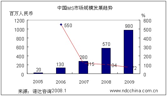 諾達(dá)咨詢認(rèn)為,隨著中國(guó)3G市場(chǎng)的啟動(dòng),IMS市場(chǎng)也將呈高速發(fā)展的態(tài)勢(shì)。到2009年,國(guó)內(nèi)IMS市場(chǎng)的總規(guī)模將達(dá)到9.8億元(僅指IMS體系的業(yè)務(wù)層和控制層)。總體而言,電信運(yùn)營(yíng)商在IMS業(yè)務(wù)層和控制層上的投資在電信總體投資的比例將長(zhǎng)期處于一個(gè)比較低的水平,主要用于與現(xiàn)存網(wǎng)絡(luò)互聯(lián)互通的網(wǎng)關(guān)設(shè)備的投資。隨著R5開(kāi)始部署,有線與無(wú)線業(yè)務(wù)的融合進(jìn)入實(shí)質(zhì)階段,并將在2009年以后呈現(xiàn)超高速增長(zhǎng)的態(tài)勢(shì)。