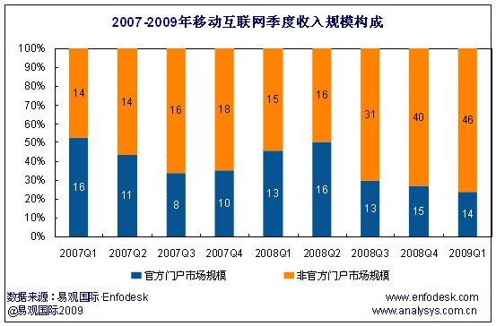 2009首季中國(guó)移動(dòng)互聯(lián)網(wǎng)收入達(dá)60億 運(yùn)營(yíng)商官方門(mén)戶(hù)有望快速增長(zhǎng)