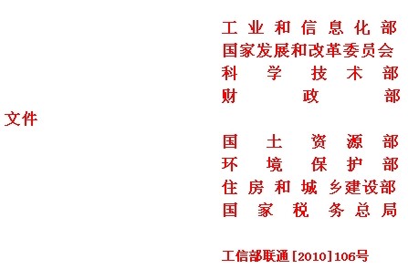 各省、自治區(qū)、直轄市、計劃單列市及新疆生產(chǎn)建設兵團工業(yè)和信息化主管部門、通信管理局、發(fā)展改革委、科技廳(委、局)、財政廳(局)、國土資源廳(局)、環(huán)保廳(局)、建設廳(局)、國稅局、地稅局,中國電信集團公司、中國移動通信集團公司、中國聯(lián)合網(wǎng)絡通信集團有限公司:
