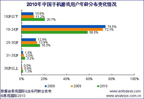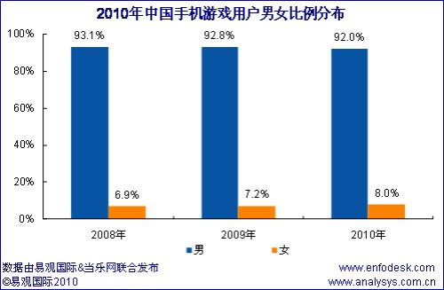 近期易觀國際、當樂網(wǎng)聯(lián)合對手機游戲用戶進行調(diào)研,推出《中國手機游戲用戶研究報告2010》,從中國手機游戲用戶結構特征和用戶行為方面分析手機游戲產(chǎn)業(yè)發(fā)展三大空間: