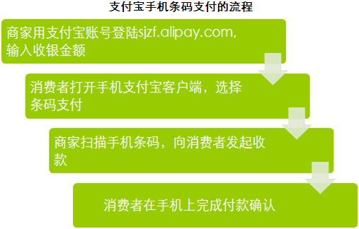 2011年7月1日上午,支付寶在2011廣州網(wǎng)貨會上推出手機支付產(chǎn)品——條碼支付(Barcode Pay)。在支付過程中使用這種產(chǎn)品,消費者與商家之間只有掃描條碼的接觸,不需要出示任何銀行卡。該支付方式主要針對現(xiàn)實中的微小商戶(如小賣店、便利店),為其提供低成本收款服務(wù)。