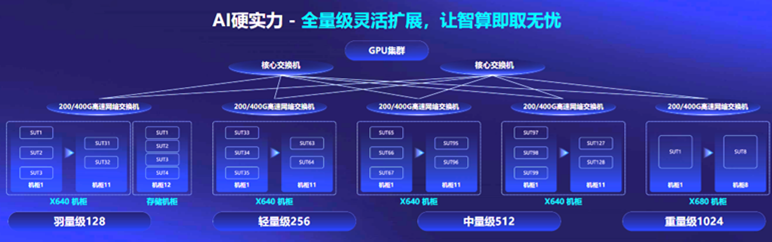 隨著算力成為稀缺資源,寧暢從客戶角度出發(fā),提供了“先享后付”的算力購(gòu)買(mǎi)方案。目前,寧暢AI算力棧已開(kāi)放免費(fèi)試用,現(xiàn)已有50+用戶預(yù)約試用。該算力棧是一個(gè)包括128臺(tái)GPU服務(wù)器的千卡級(jí)別算力集群,標(biāo)準(zhǔn)化智算中心建設(shè)方案囊括了羽量級(jí)128、輕量級(jí)256、中量級(jí)512、重量級(jí)1024四個(gè)等級(jí),實(shí)現(xiàn)全量級(jí)靈活擴(kuò)展,給了用戶極大選擇空間。用戶可在試用中嘗試不同的業(yè)務(wù)組合、方案框架,以便找到“最優(yōu)性價(jià)比”的智算中心建設(shè)方案。