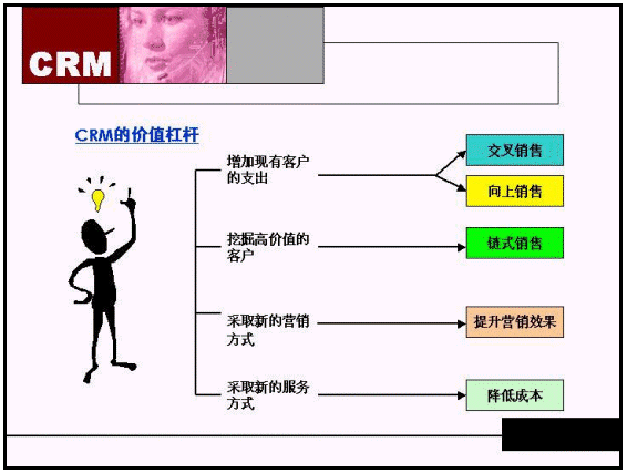 "主要從這樣幾個方面來體現(xiàn):1、增加現(xiàn)有客戶的支出;2、準確挖掘高價值的客戶;3、使營銷的方式更加行之有效;4、提升發(fā)展商的運營能力。"