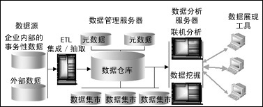 從圖中可以看出,數(shù)據(jù)倉(cāng)庫(kù)是BI的基礎(chǔ),聯(lián)系分析處理和數(shù)據(jù)挖掘是數(shù)據(jù)倉(cāng)庫(kù)上的兩類不同目的的數(shù)據(jù)增值操作。聯(lián)機(jī)分析工具是數(shù)據(jù)匯總/聚集工具,它提供切片、切塊、下鉆、上卷和旋轉(zhuǎn)等數(shù)據(jù)分析操作,簡(jiǎn)化用戶的數(shù)據(jù)分析工作。數(shù)據(jù)挖掘支持知識(shí)發(fā)現(xiàn),包括找出隱藏的模式和關(guān)聯(lián),構(gòu)造分析模型,進(jìn)行分類和預(yù)測(cè),并用可視化工具提供挖掘結(jié)果。數(shù)據(jù)分析工具和數(shù)據(jù)挖掘工具可以配合使用,由數(shù)據(jù)分析為數(shù)據(jù)挖掘提供預(yù)期的挖掘?qū)ο蠛湍繕?biāo),避免挖掘的盲目性?梢哉f(shuō),數(shù)據(jù)倉(cāng)庫(kù)、OLAP和數(shù)據(jù)挖掘技術(shù)是企業(yè)BI的三大支柱。