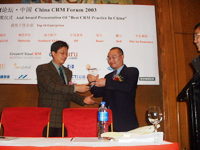 中國最佳CRM實(shí)施的授獎儀式已在2003年CRM論壇·中國上如期舉行,共有300余人參加了本次論壇(北京,上海和深圳會場)。|