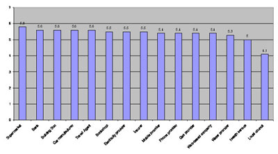目前全球絕大多數(shù)的客戶體驗(yàn)都極為冷漠。我對歐洲所作的調(diào)研顯示人們對所有行業(yè)企業(yè)的情感依賴性相當(dāng)接近(2)。500位消費(fèi)者評出了自己的最佳客戶體驗(yàn),該調(diào)研橫跨多個(gè)行業(yè)。他們對供應(yīng)商作了如下評價(jià)(等級從0-7):