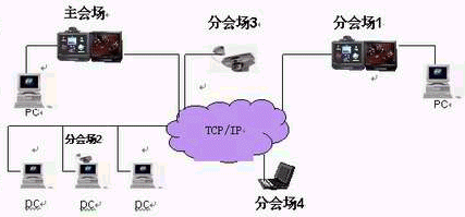 會議的組織,召開,管理由主會場來完成。因此,主會場的視頻,聲音,通知,指示,下達的文件資料各分會場都應該收到。當某分會場發(fā)言時,其視頻,聲音同樣要傳送給其他會場。(如下圖所示)上述所有動作的完成依賴組播技術(shù)。通過組播技術(shù)把主會場的各種數(shù)據(jù)發(fā)送到參加會議的分會場中,而且把發(fā)言分會場的視音頻數(shù)據(jù)發(fā)送給其他會場:即主會場和發(fā)言分會場的各種數(shù)據(jù)只要在網(wǎng)上發(fā)送一次,其他會場都將收到此數(shù)據(jù),(這就是有別于點對點通信方式的地方)而與這兩個會場在同一網(wǎng)段卻不參加會議的非成員不會收到數(shù)據(jù)(只要設備支持,這也是有別于廣播的地方)。因此,當會議成員增加時,不會產(chǎn)生信息傳輸量劇增,帶來無法忍受的網(wǎng)絡延時和抖動。