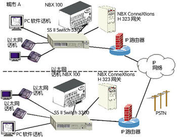 NBX商用話機是基于 SIP的以太網(wǎng)話機,它內含兩個標準以太網(wǎng)接口,可與局域網(wǎng)交換機直接連接,同時拖帶一臺 PC上網(wǎng)。由于話機本身就支持