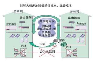 這樣一種結構作為一種模式,一直為眾多企業(yè)所采用。但是隨著近年來三網(wǎng)合一的發(fā)展,IP網(wǎng)自身的不斷完善,及各企業(yè)為提高競爭力、大力壓縮管理成本、提供多元化的產(chǎn)品服務的需求,這種模式終于被打破,一種全新的基于IP技術的IP