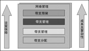 如圖所示,網(wǎng)絡(luò)管理貫穿于四個(gè)模塊建立過(guò)程中。特定的組件應(yīng)針對(duì)網(wǎng)絡(luò)基礎(chǔ)設(shè)施的特定部分而實(shí)施。具體實(shí)施時(shí),應(yīng)首先從帶寬分配模塊開(kāi)始,然后逐個(gè)上移。實(shí)施的模塊越多,保證的品質(zhì)會(huì)越高,但同時(shí)也增加了管理的復(fù)雜性,加大了維護(hù)成本。