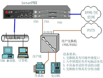 在實(shí)際使用過(guò)程中,經(jīng)常會(huì)出現(xiàn) interPBX與已有的PBX搭配使用的情況。interPBX與PBX搭配使用有很多好處,例如節(jié)省整個(gè)系統(tǒng)的設(shè)備投入成本、有效利用現(xiàn)有的布線及電話機(jī)等。