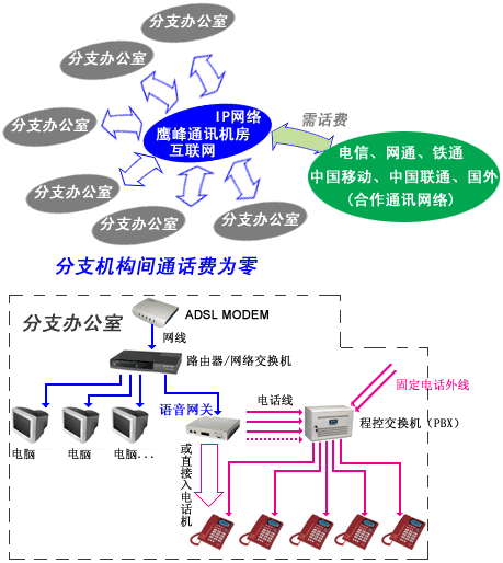 針對(duì)以上現(xiàn)狀,鷹峰NGN組網(wǎng)方案協(xié)助A公司在中國(guó)總部進(jìn)行了周密的分析與考察并就相關(guān)的產(chǎn)品技術(shù)進(jìn)行了深入的研究與探討,提供了以A公司在中國(guó)現(xiàn)有數(shù)據(jù)專網(wǎng)為基礎(chǔ)的,融合語(yǔ)音通信的解決方案,這是一套充分利用A公司現(xiàn)有數(shù)據(jù)網(wǎng)絡(luò)資源優(yōu)勢(shì),可行、先進(jìn)、完整的企業(yè)VoIP通信解決方案。將最終以A公司目前在中國(guó)所有機(jī)構(gòu)為結(jié)點(diǎn),組成在中國(guó)的VoIP網(wǎng)絡(luò)。方案匯集了鷹峰通訊所有最新PBX/語(yǔ)音網(wǎng)關(guān)及網(wǎng)絡(luò)通訊技術(shù)及設(shè)備,保護(hù)了原有的交換機(jī)資源,不改變撥號(hào)習(xí)慣,體現(xiàn)了非?捎^的經(jīng)濟(jì)效益,并且實(shí)現(xiàn)了快速實(shí)施,將投入的時(shí)間,資金縮到了最小。