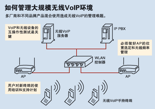 準(zhǔn)確地說,無線VoIP屬于系統(tǒng)集成項目,一般涉及WLAN廠商、PBX/VoIP廠商和像Polycom和Vocera Communications這樣的專業(yè)語音設(shè)備提供商(這些廠商提供讓無線VoIP運轉(zhuǎn)起來的客戶手機、服務(wù)器軟件和專有協(xié)議)。另一個是基礎(chǔ)設(shè)施廠商,如Cisco、3Com等。