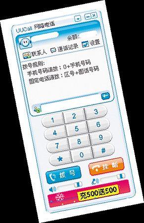 與傳統(tǒng)電話相比,UUcall的價(jià)格頗具吸引力。據(jù)了解,電腦使用該軟件并充值后,撥打全球任意手機(jī)、座機(jī),最低話費(fèi)為0.06元/分鐘,國內(nèi)長途0.12元/分鐘,國際長途至美國0.22元/分鐘。低廉的價(jià)格使UUcall等網(wǎng)絡(luò)電話擁有一大批在海外、異地求學(xué)、工作,且電話往來頻繁的客戶群。