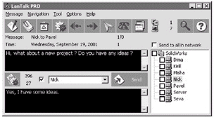 像ICQ、OICQ、MSN Messenger等即時(shí)通訊軟件必須登錄Internet后才能使用,并不支持局域網(wǎng),而LanTalk Pro是一款局域網(wǎng)即時(shí)通訊的專用軟件,通過它你可以快速、方便地與同一局域網(wǎng)中的任何人進(jìn)行實(shí)時(shí)交流。